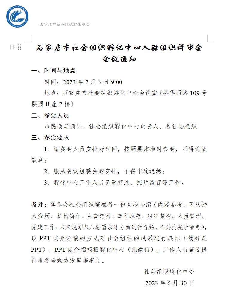 为进一步推进社会组织与市民政局社会组织管理科互动交流,石家庄市社会组织孵化中心于7月3日在熙园B座开展社会组织孵化入驻评审会;