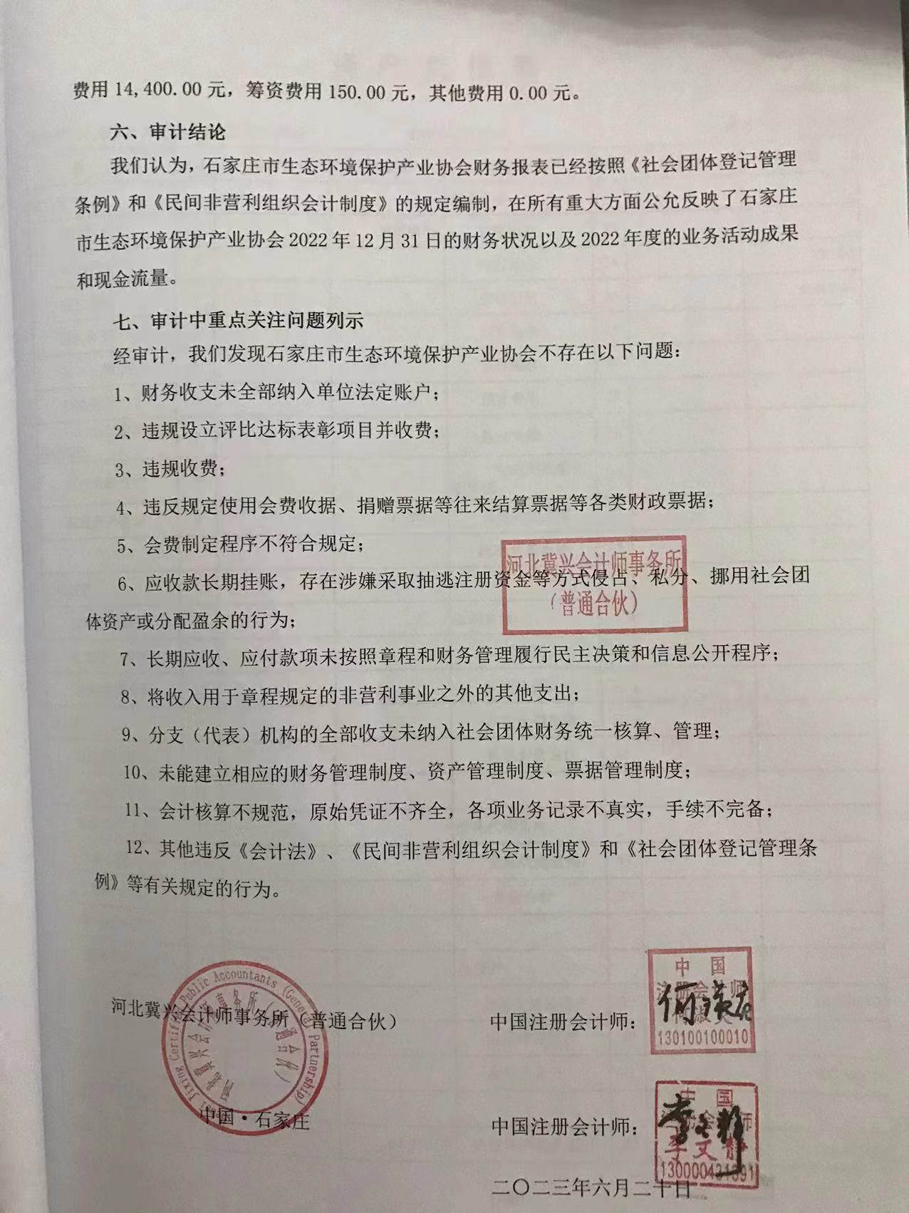 3.接受外部会计师事务所财务审计,获得协会2022年财务审计报告。